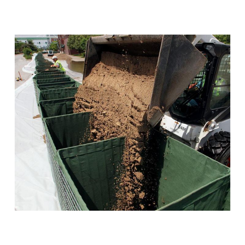 Una unidad recuperable revestida de geotextil para uso general como barrera rellena de tierra. Las unidades son adecuadas para rellenar con tierra, arena, grava, roca triturada y otros materiales granulares. La unidad cumple una amplia gama de usos, incluida la construcción de muros y barreras protectoras.
